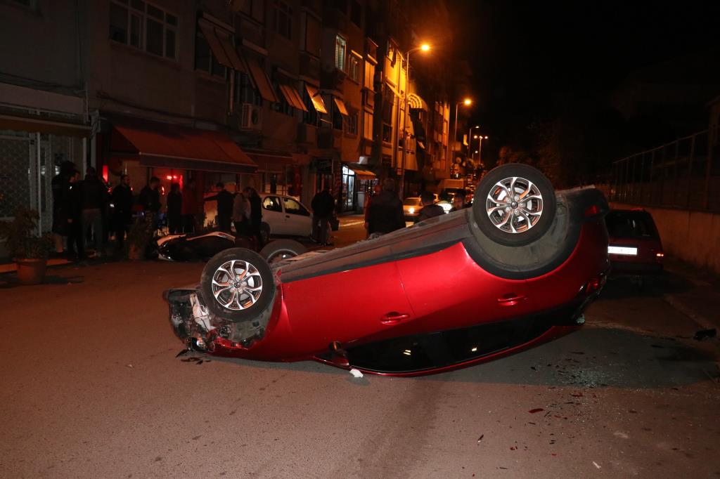 Kaza gece saatlerinde Orhanlar Mahallesi Yalı Caddesi üzerinde meydana geldi. İddiaya göre H.B. (45) idaresindeki 34 BAS 22 plakalı otomobil park halinde ki 67 AAN 482 ve 67 TK 284 plakalı motorsiklete çarparak ters döndü. Sürüklenen otomobil sürüklenerek yine park halindeki 67 FC 316 plakalı başka bir araca çarparak durabildi. Kaza yapan otomobilde bulunan sürücü ve yanındaki A. B. K. (17) vatandaşların yardımı ile otomobilden çıkartıldı. Vatandaşların haber vermesi üzerine olay yerine gelen 112 sağlık görevlileri yaralılara ilk müdahaleyi yaptıktan sonra ambulansla ilçedeki özel bir hastaneye kaldırdı. Ters dönen otomobil ile kazada hasar gören 1 otomobil ile motosiklet çekici ile olay yerinden kaldırılırken, yaralıların sağlık durumlarının iyi olduğu öğrenildi.