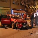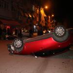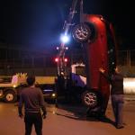 Otomobil park halindeki araçlara çarpıp ters döndü: 2 yaralı