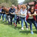yapan öğrenciler voleybol, yakar top, halat çekme, çuval yarışı, beden dili hareketleri ile kulaktan