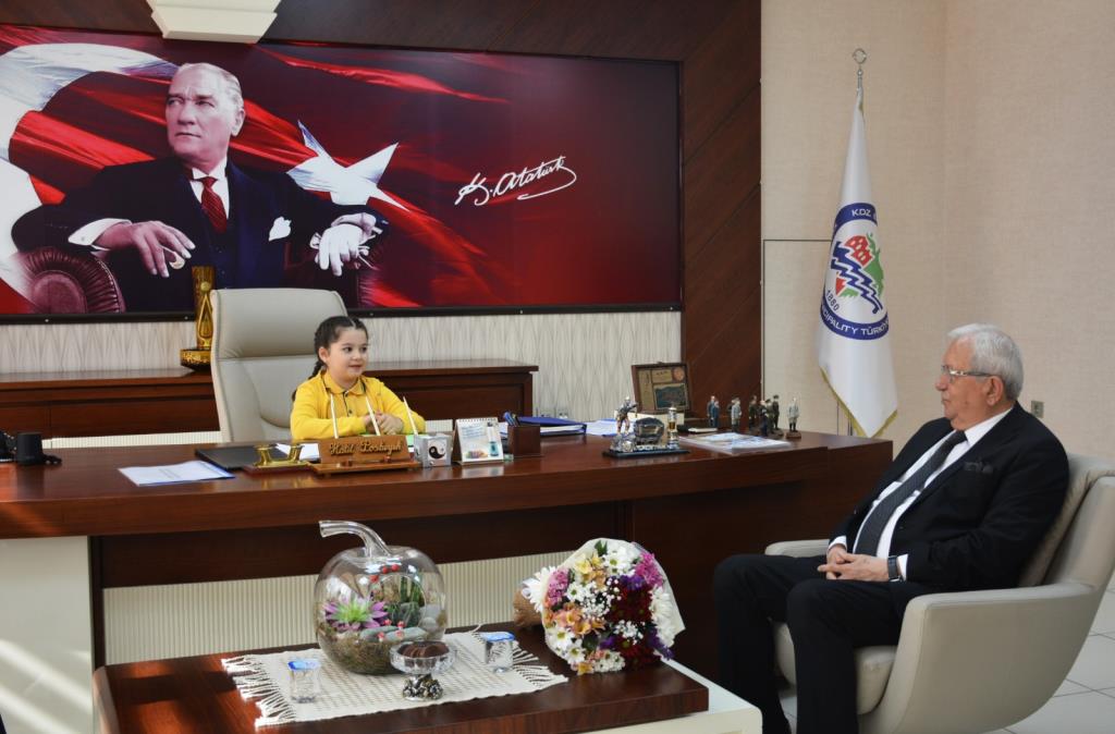 Kdz. Ereğli Belediye Başkanı Halil Posbıyık, 23 Nisan Ulusal Egemenlik ve Çocuk Bayramı etkinlikleri kapsamında makamını, Ören İlkokulu 3.sınıf öğrencisi Ravza Dilaver’e teslim etti.