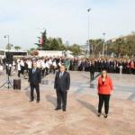 Karadeniz Ereğli Kaymakamı İsmail Çorumluoğlu, Karadeniz Bölge ve Garnizon Komutanı Tuğamiral Özden Yazıcıoğlu, Ereğli Belediye Başkanı Halil Posbıyık, daire müdürleri, sivil toplum kuruluşu ve siyasi parti temsilcileri ile çok sayıda vatandaşın katıldığı törenlerde saygı duruşunda bulunuldu, İstiklal Marşı okundu.