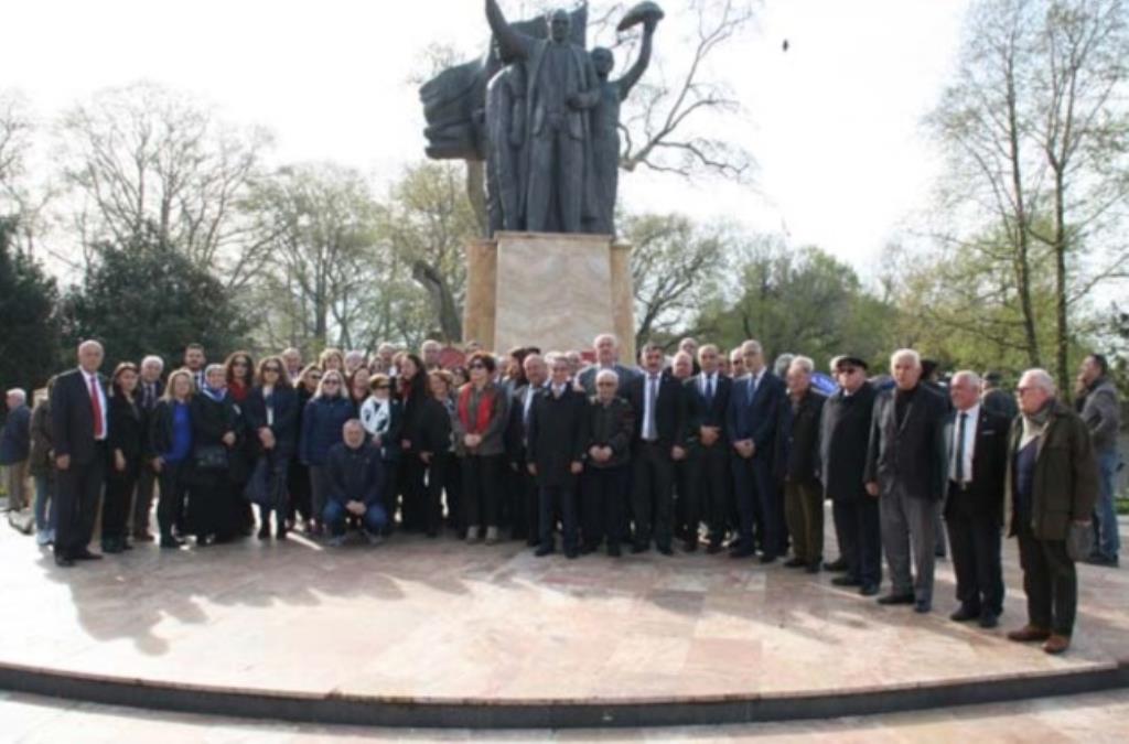 CHP’liler ve STK temsilcileri Aras’ın konuşmasının ardından anıt önünde hatıra fotoğrafı çektirdi.