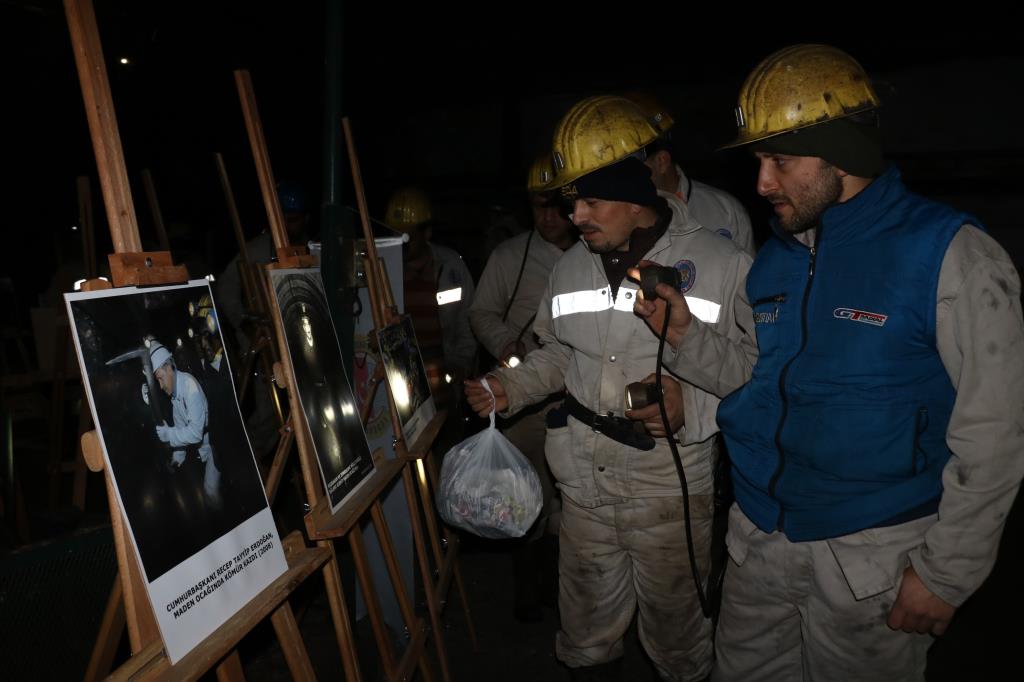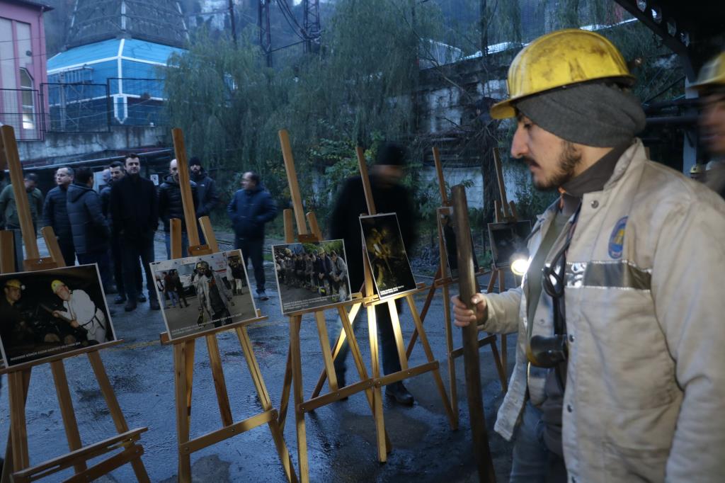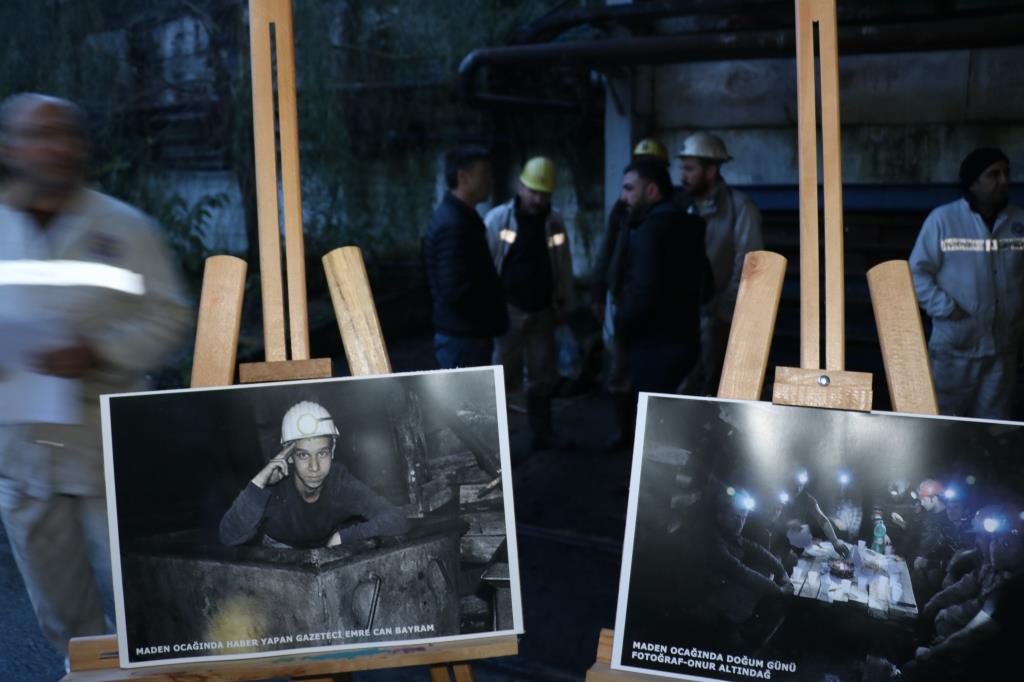 Zonguldak Gazeteciler Cemiyeti, bu yıl bir ilki gerçekleştirerek Dünya Madenciler Günü'nde madencilerin zorlu çalışma şartlarının yer aldığı fotoğrafları maden ocağı girişinde sergiledi.