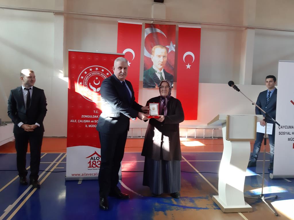 Zonguldak'ın Çaycuma ilçesinde Aile Çalışma ve Sosyal Hizmetler İl Müdürlüğü tarafından gazilere ve şehit yakınlarına Kuzey Kıbrıs Türkiye Cumhuriyeti (KKTC) Milli Mücadele plaketi verildi.