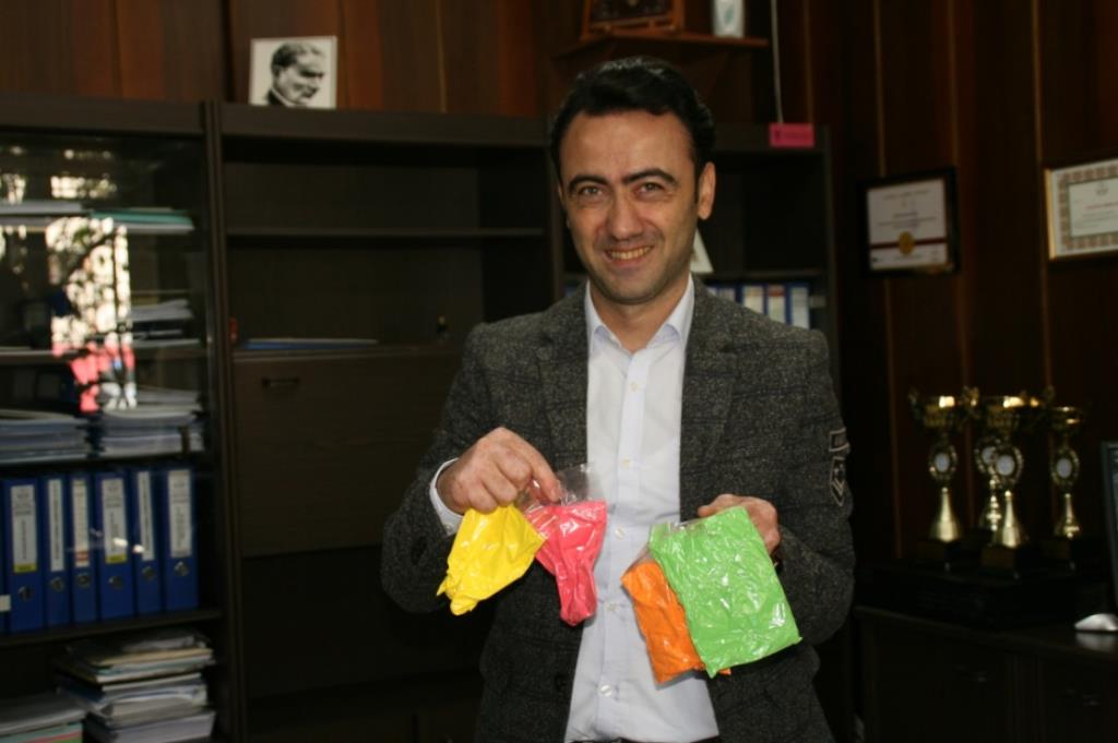 Müdür Yardımcısı Arslan, Life in Colors etkinliğinde kullanılacak gıda boyalarını da basına tanıttı.