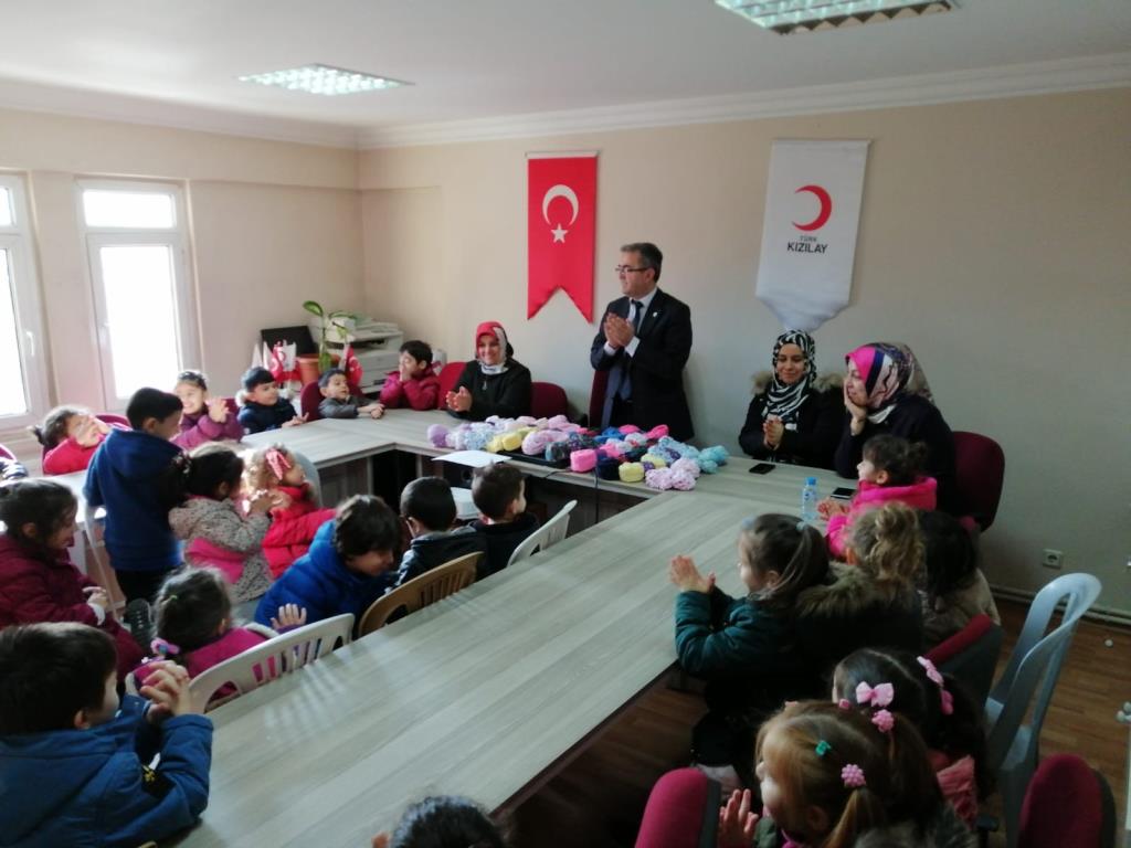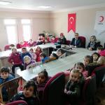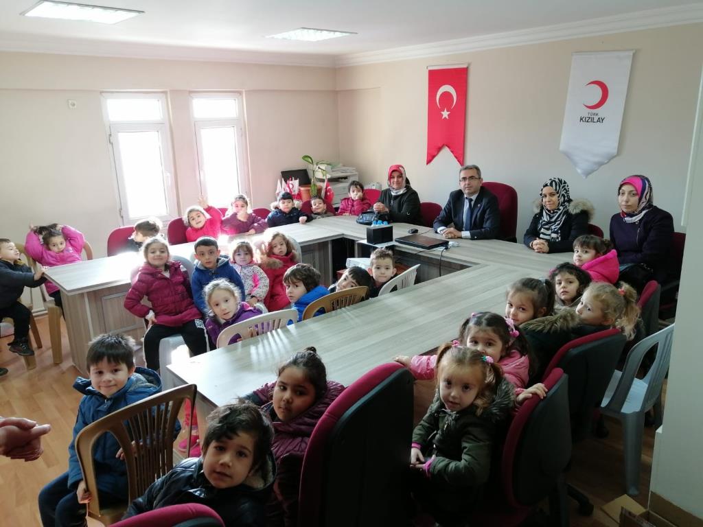 Kurs sorumlu öğretmeni Arzu Yarbaşı eşliğinde Türk Kızılayı Karabük Şubesine gelen çocukları, Şube Başkanı Özcan Büyükgenç karşıladı.