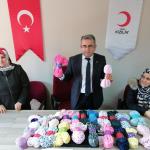 Çocuklar, heyecanla ve mutlulukla kendileri ördükleri atkıları ihtiyaç sahibi çocuklara verilmek üzere Büyükgenç'e teslim etti.