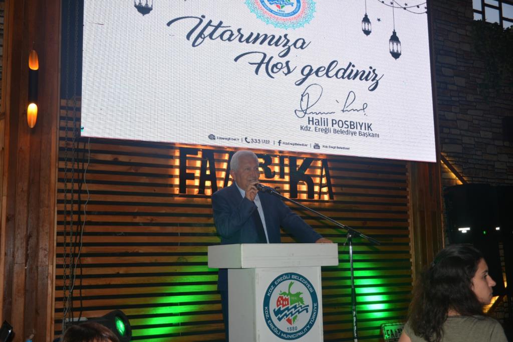 Kdz. Ereğli Belediye Başkanı Halil Posbıyık, ilçe protokolüne iftar verdi. Katılımcılara teşekkür eden Başkan Posbıyık; “Kadir gecesi geleneksel iftarımıza tüm halkımızı ve sizleri davet ediyoruz” dedi.