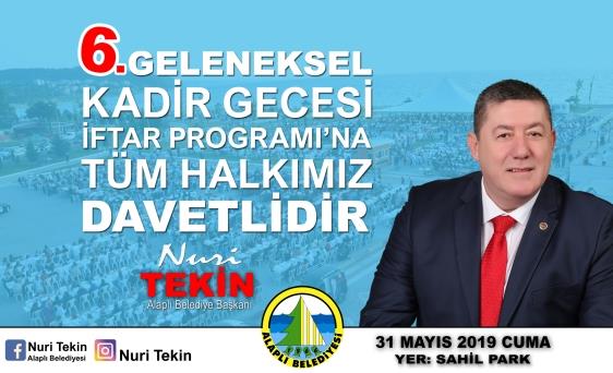 Alaplı Belediye Başkanı Nuri Tekin, 31 Mayıs Cuma günü Sahil Park’ta 6. düzenleyeceğimiz ‘Kadir Gecesi İftar Programına’ tüm halkımızı davet ettiklerini söyledi.