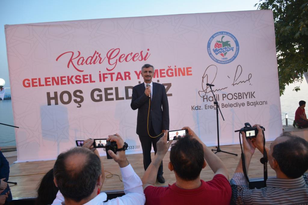Zonguldak Ereğli Belediyesi’nin düzenlediği geleneksel Kadir Gecesi programında 12 bin kişi birlikte iftar açtı. Zonguldak Valisi Erdoğan Bektaş ve Belediye Başkanı Halil Posbıyık, halkın Kadir Gecesi’ni ve Ramazan Bayramı’nı kutladı.