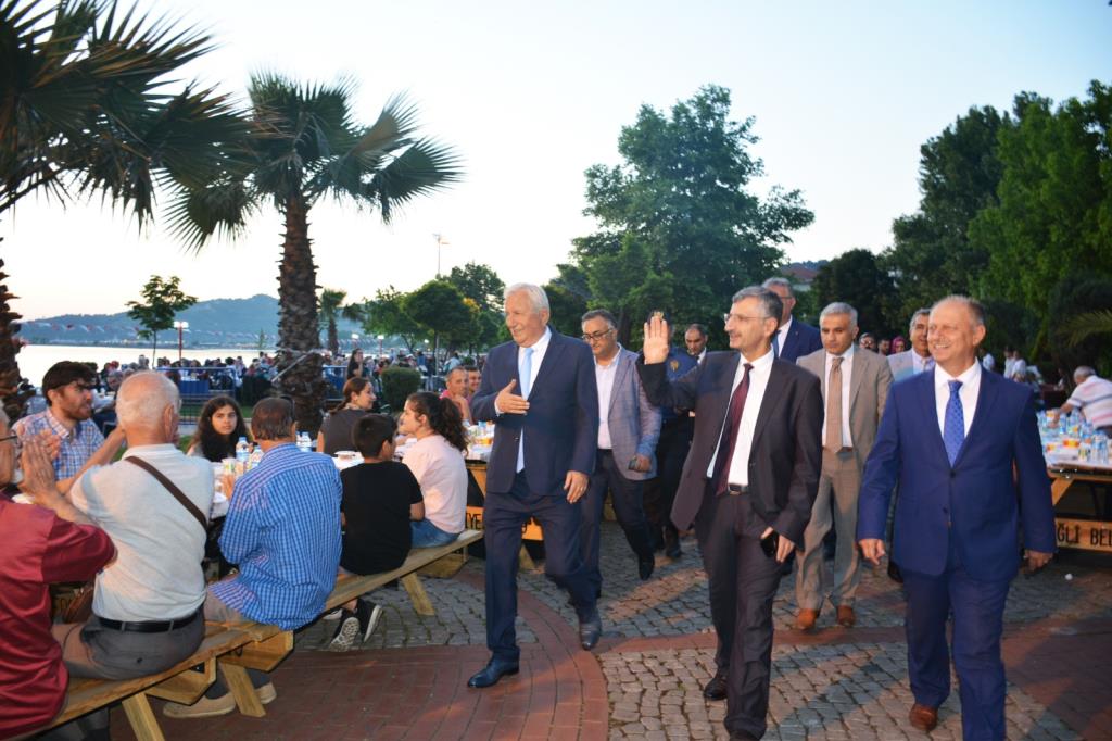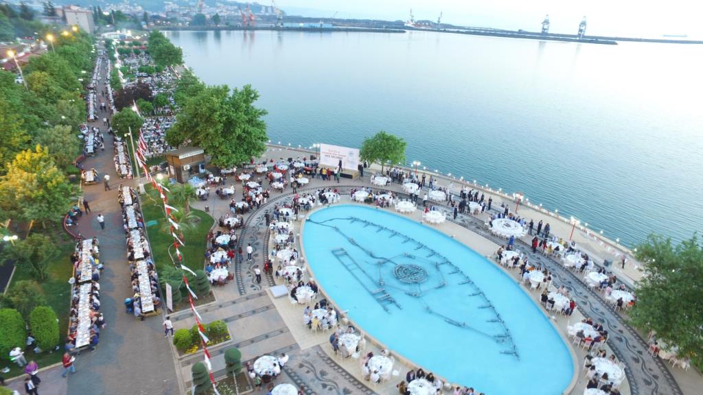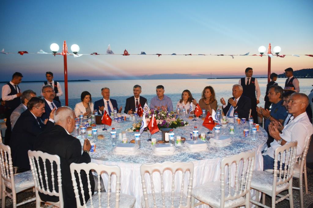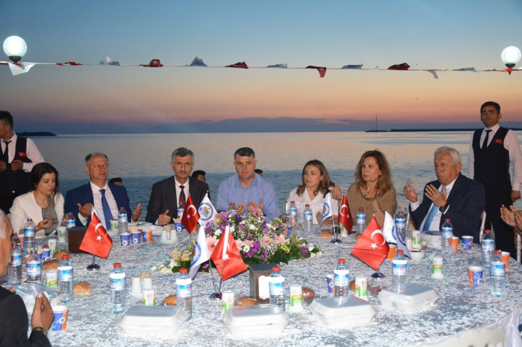 Elif Otel ile Erdemir idari binası arasında kalan sahil bandında gerçekleşen İftar yemeği için oluşturulan 10 bin kişilik masa düzeni dolarken 2 bin kişi de yerleri daha önce hazırlanan yer sofralarında birlikte oruç açtı.