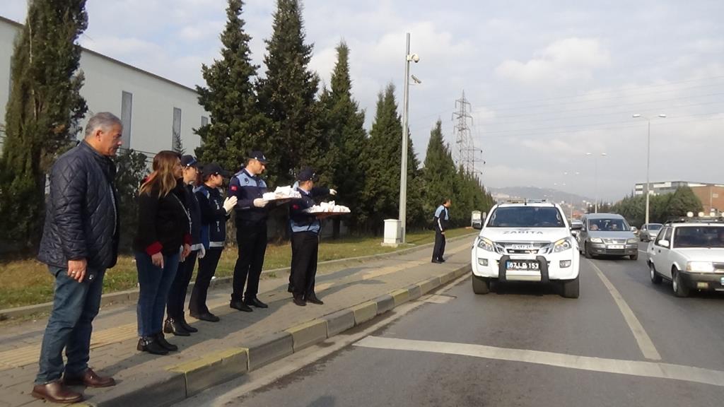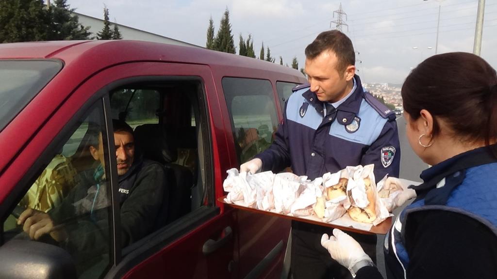 Zabıta bu kez şaşırttı. Şehrin çıkış noktalarında araçları durduran Zabıta ekibi, vatandaşlara ekmek arası hamsi dağıttı. Başkan Yardımcısı Selma Açıkgöz ve Zabıta Müdürü Halit Aydın sürücülere Başkan Halil Posbıyık’ın selamlarını iletti.