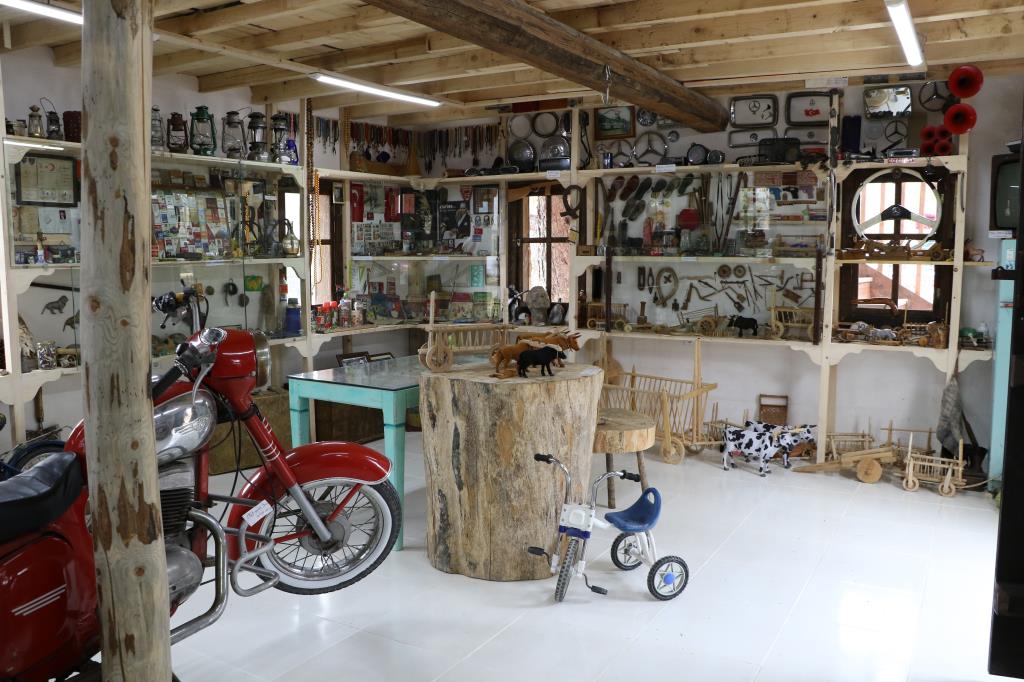 Oğlu Mustafa Tunç'un da kendisine yardımcı olduğunu ifade eden Tunç, "Çocukluğumdan kalma, kitaplar, alfabeler, çantalar, bindiğimiz kızak ve kayıklar, çemberler, çelik çomak oyunlarının hepsini biriktirdim. Bazı arkadaşlarım hediye getiriyorlar onların da isimlerini yazarak saklıyorum. Onları da anımsamış ve hatırlamış oluyorum. 50 senedir biriktiriyorum, burada 200-250 yıllık eşyalar var. Ahşap işlerini kendim yaptım, atölyem var orada hepsini yapıyorum" dedi.
