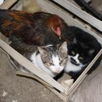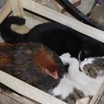 Karabük’te marangoz atölyesindeki limon kasasında 2 kedi ve bir horozun dostluğu görenleri şaşırtıyor. Çoğu zaman horozun yanından ayrılmayan kediler, horozla birlikte uyumaktan da zevk alıyorlar.