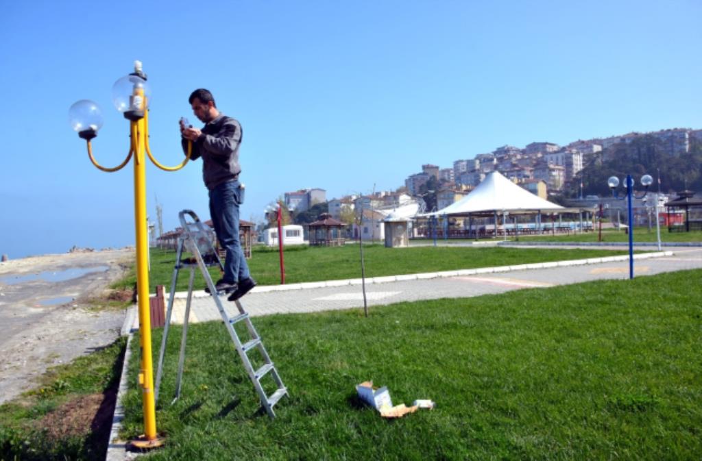 Alaplı Belediyesi ekipleri, sahil parkında hummalı bir çalışmaya imza atıyor. Parkta bulunan ağaçların budama ve bakım çalışmasını yapan ekipler, çim biçme ve boya işleri yapıyor. Kamelyalar ve oturma alanları başta olmak üzere aydınlatma lambalarını yenileyen Belediye ekipleri, Batı Karadeniz’in en gözde sahil parkını Ramazan ayı ve Yaza hazırlıyor.