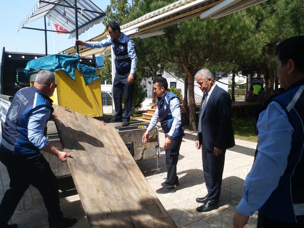 Yapılan çalışma ile sahilde bulunan midyeci, balıkçı, oyuncakçı, mısırcı, akülü araba gibi seyyar tezgahlar ile izinsiz açılan çay ocakları tümüyle kaldırıldı, çekek yerleri temizlendi.