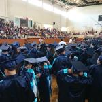 312 öğrenci hep birlikte keplerini havaya fırlatarak mezun olmanın sevincini aileleriyle birlikte yaşadılar.