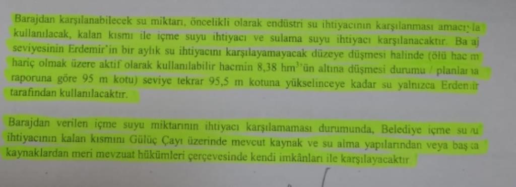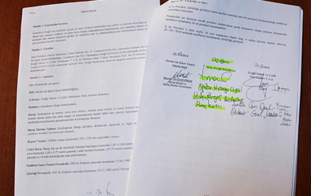 Teslim mi olayıyım, Ereğli halkını teslim mi edeyim. Yarın suları mı kesilsin halkın. Sadece kuraklık zamanı, demiyor. Bypass işlemleri olduğu zaman, boru değişimi sırasında yine suyu kesecek. Bu bir idam fermanıdır. Bunu benden önceki belediye başkanı niye imzaladı, ben onu bilemem. İşin garip tarafını imzalara dikkat ederseniz Erdemir Genel Müdürü hem kendisi miza atıyor, hem teknik yardımcısı imza atıyor. Belediye tarafında bir tek Hüseyin Uysal’ın imzası var. Göreceksiniz dosyada. Neden niye, o imza kolay bir imza değil. Belediyede su konusunda uzman arkadaşlar var. Bu arkadaşlardan birine sorsa 'Ne yapıyorsun sen' der.
