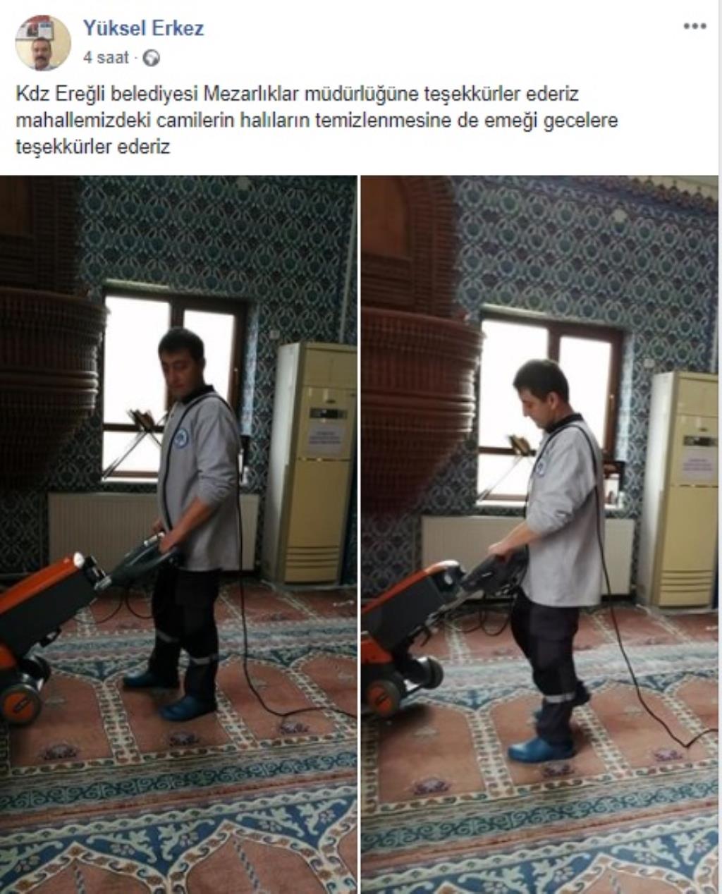 31 Mart Yerel Seçimleri'nin ardından Kdz. Ereğli'de yönetim değişmiş Cumhuriyet Halk Partisi Adayı Halil Posbıyık seçimi kazanmıştı. Başkanlığı devralan Posbıyık, yönetim kadrosunu belirlemiş, Mezarlıklar Müdürü olarak da Metin Avcı'yı göreve getirmişti. Göreve gelen Avcı çalışmalarına Elma Tepe Mahallesi'nden başladı. Elma Tepe Camii'nın halıları belediye çalışanlarınca temizlendi. Halıların Temizlenmesi , mahalle halkını ve vatandaşları memnun etti.