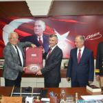 Başkan Posbıyık daha sonra ziyaretin anısına Vali Erdoğan Bektaş’a çeşitli hediyeler takdim etti.