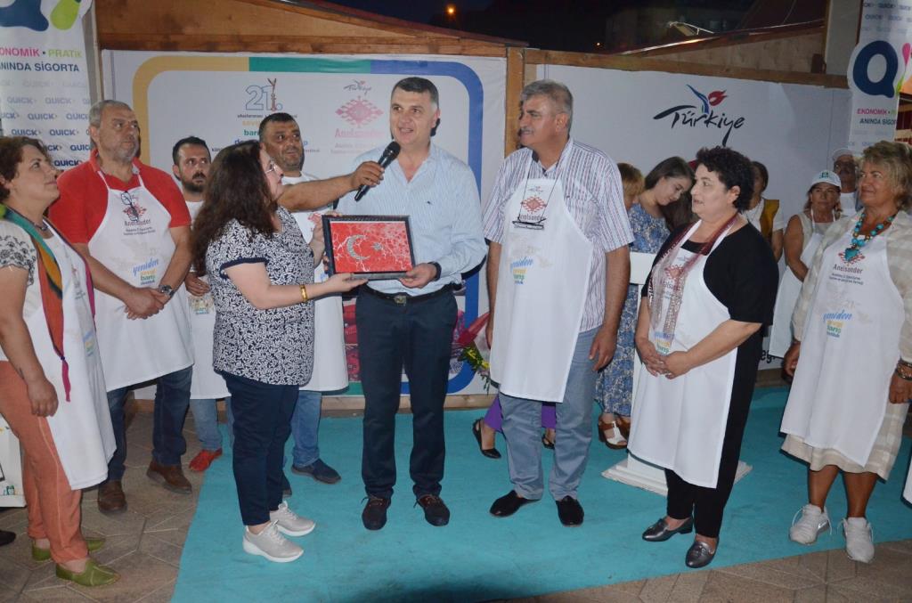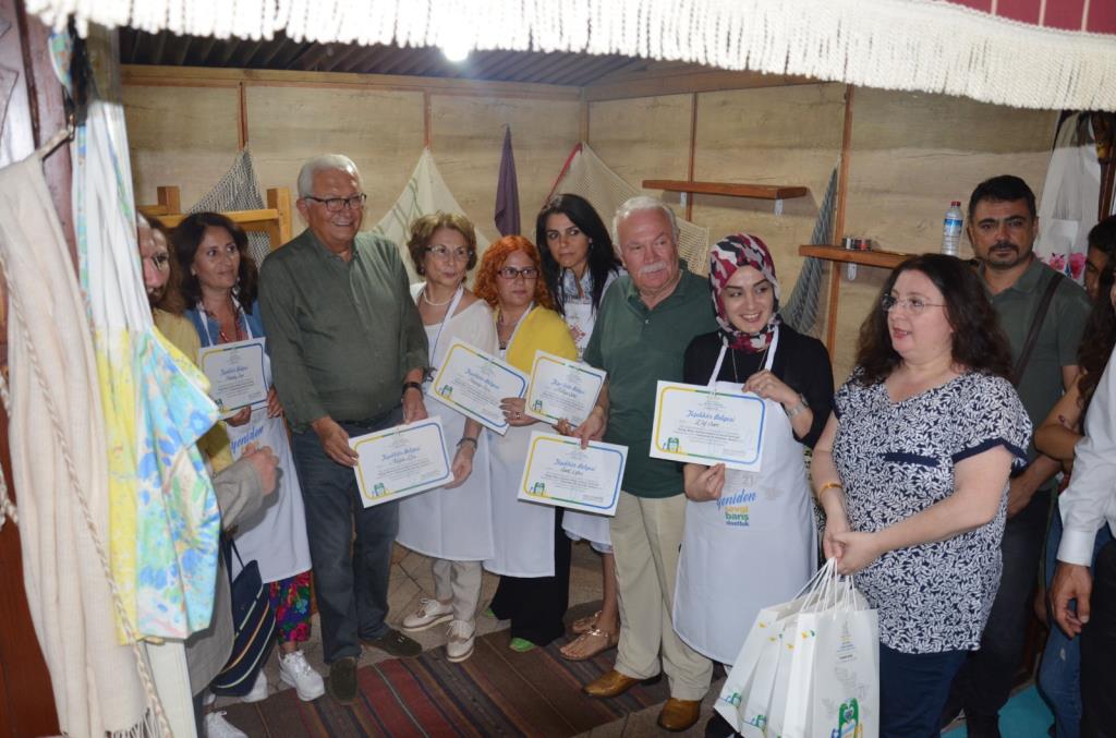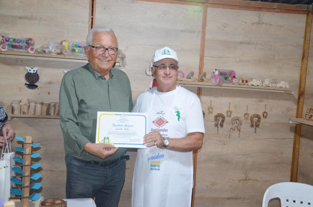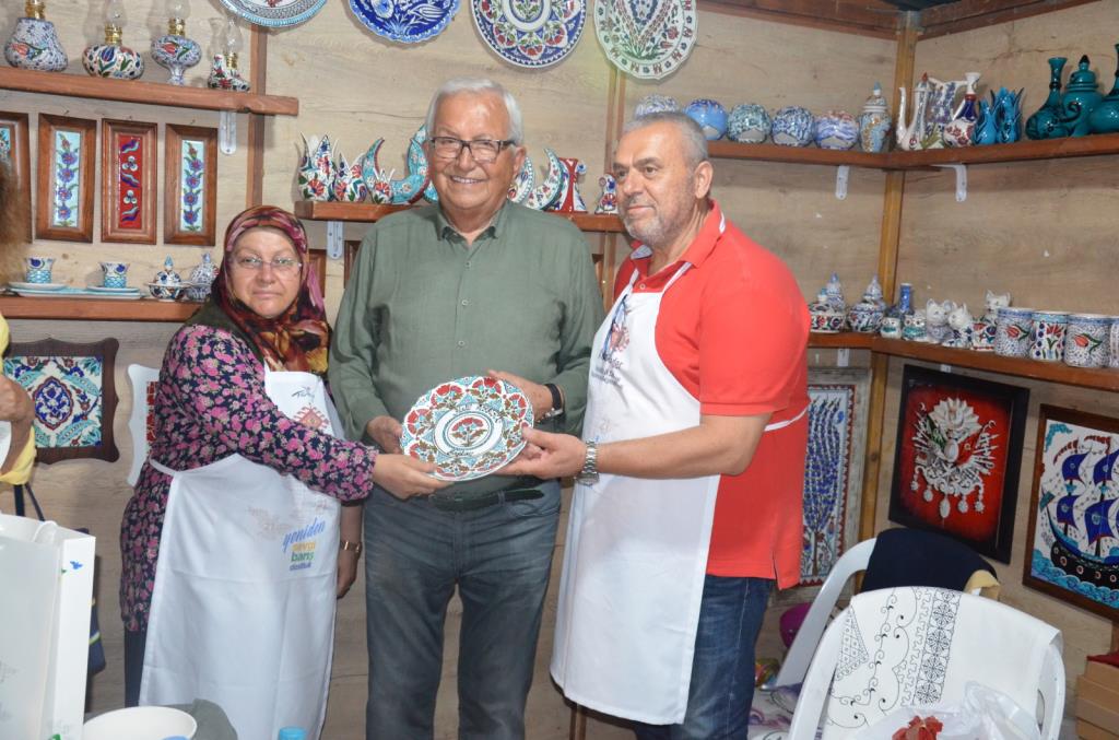 El işi ustaları, Kaymakam İsmail Çorumluoğlu, Garnizon Komutanı Cemal Özden Yazıcıoğlu ve Başkan Posbıyık’a el ürünü çeşitli hediyeler takdim ettiler.