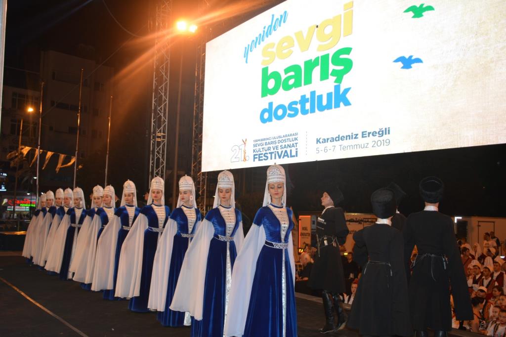 21. Sevgi, Barış, Dostluk Kültür ve Sanat Festivali’ne katılmak üzere Kdz. Ereğli’ye gelen 6 ülkenin halk dansları grupları oyunlarıyla festivale merhaba dedi.