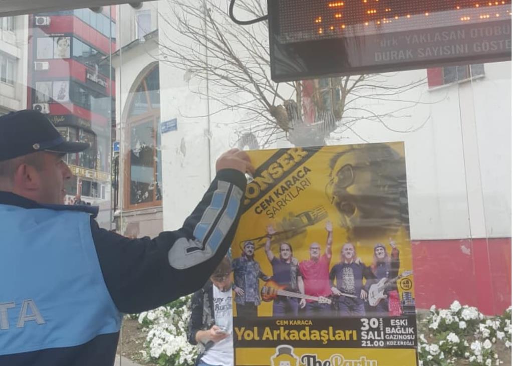 Kdz.Ereğli Belediye Başkanı Halil Posbıyık’ın talimatıyla cadde ve sokaklara izinsiz asılan afişler zabıta ekipleri tarafından tespit edilerek tek tek kaldırılıyor.