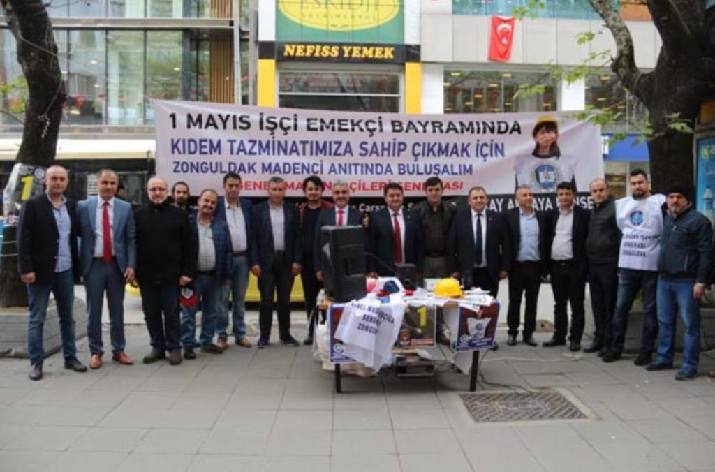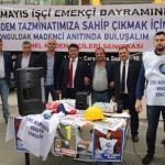 Zonguldak'lı vatandaşları 1 Mayıs'ta Madenci Anıtı'nda buluşmaya davet eden GMİS, etkinlik ile ilgili afiş, broşür, el ilanları ve GMİS Amblemli şapkaların dağıtımı ve çağrı anonsu için Stand açtı.
