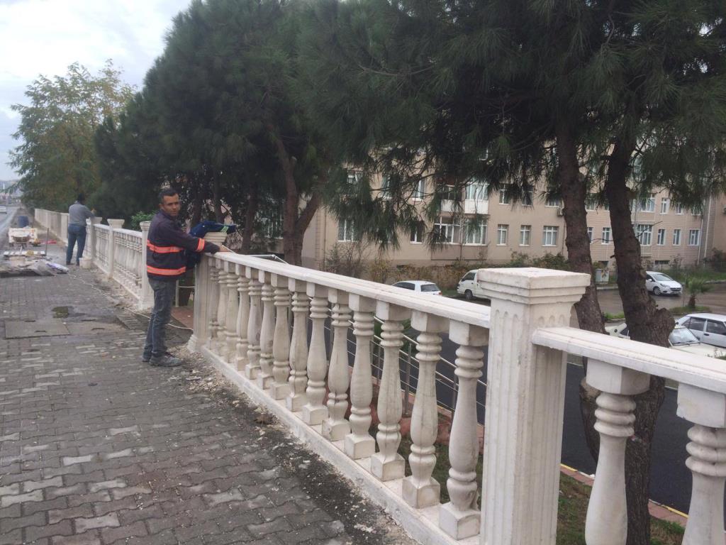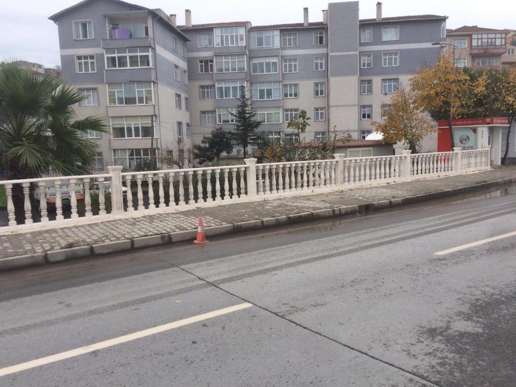 Gülüç Belediye Başkanlığı Fen İşleri Müdürlüğü, Merkez Mahallesi Erdem Yuva Evleri ana yol kenarındaki Trabzan korkuluk çalışmaları tüm hızıyla devam ediyor.