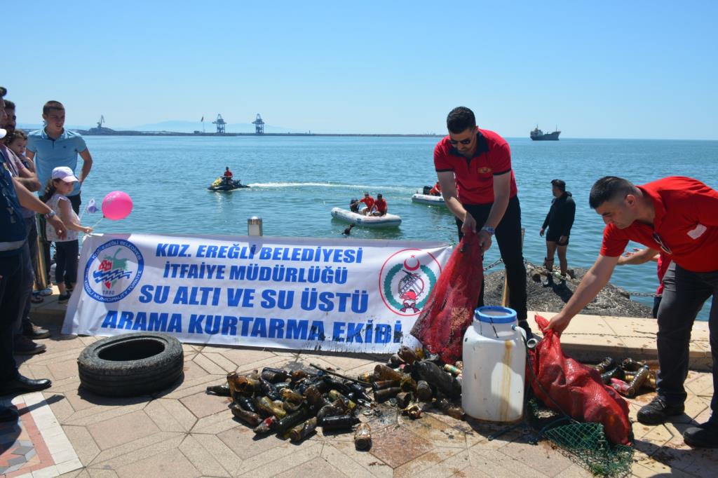 Kdz. Ereğli Kaymakamı İsmail Çorumluoğlu ve Belediye Başkanı Halil Posbıyık’ın da katıldığı şenlikte İtfaiye Müdürlüğü Sualtı Arama ve Kurtarma ekibi 5 dalgıç ile amfi tiyatro arkasında denizden atık çıkardı.