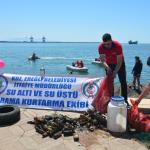 7 dakika süren çalışmada dalgıçlar suyun dibinden çok sayıda malzeme çıkardı.