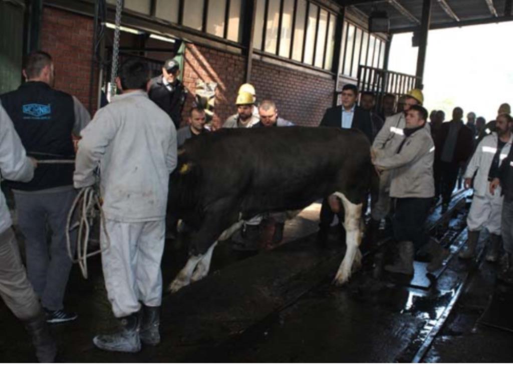 Kur-an töreni ve duaların okunmasının ardından kurbanlık boğa Gelik Yeni Kuyu başında dualar ve tekbirler eşliğinde kesildi. Kesilen kurbanın etleri işyerinde kavrularak maden işçilerine ikram edildi.
