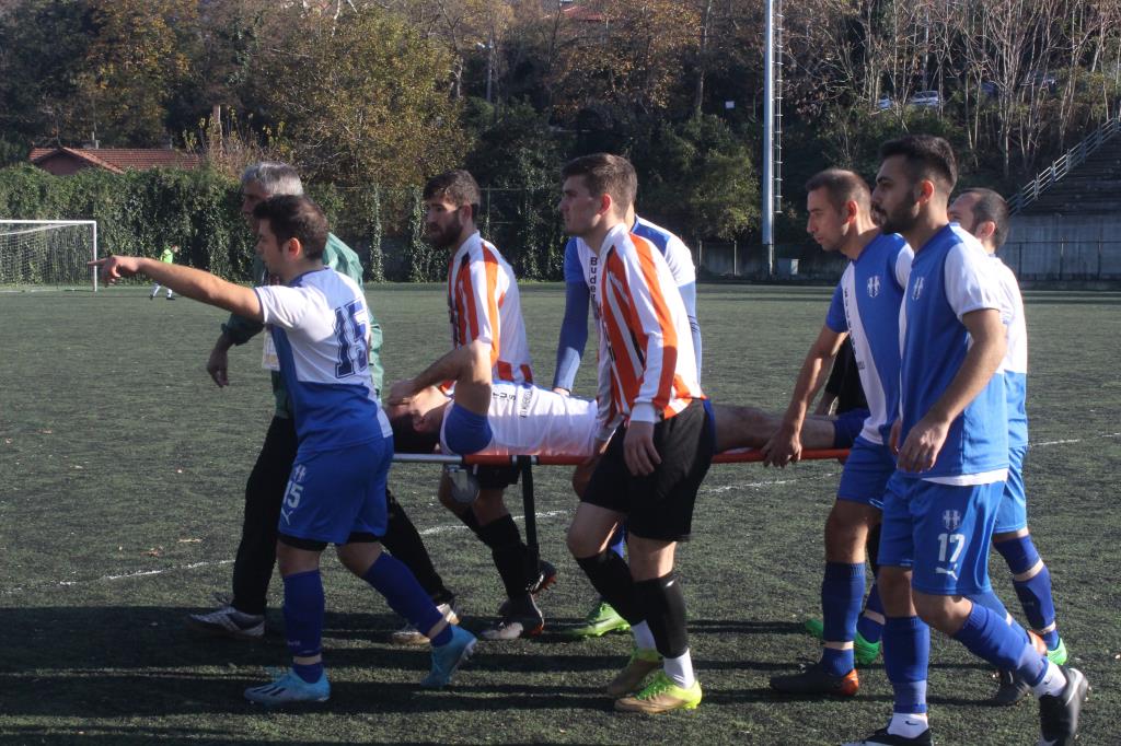 1. Amatör Küme A Grubunda bugün Fener sahasında oynanan, Üzülmezspor - Ayiçispor karşılaşmasının 11'inci dakikasında yürekler ağızlara geldi. Üzülmezspor'un sağ bek oyuncusu Hasan Öner, rakibiyle girdiği mücadele sonucunda ters düşerek acılar içinde yerde kaldı. Ardından saha içerisindeki sağlık görevlisi Mustafa Kaya, Öner'in bileğinin kırıldığı tespit ederek tekmelikten atel yapıp oyuncuya müdahale edildi. Olay yerine ambulans çağrıldı. 112 sağlık görevlileri yaralı futbolcuya müdahale ederek Atatürk Devlet Hastanesi'ne kaldırıldı.
