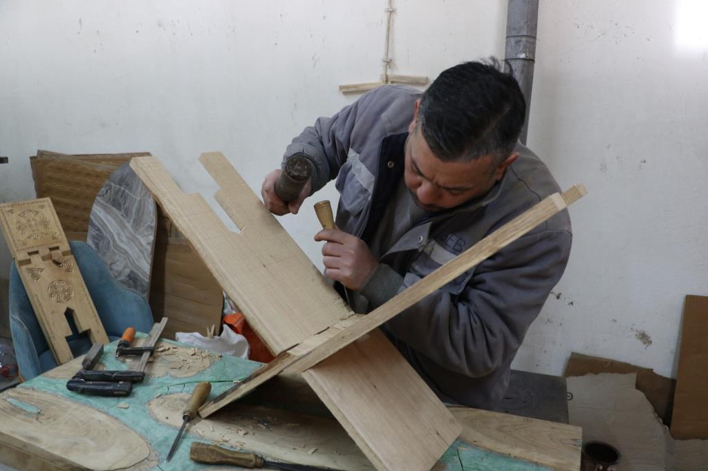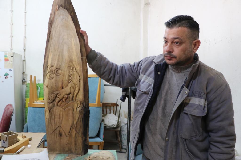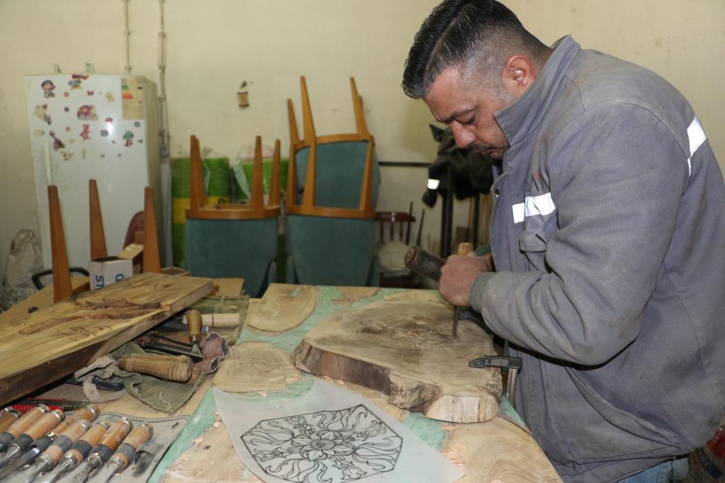 KARABÜK (İHA) - Irak'taki iç karışıklıktan dolayı ailesiyle Türkiye'ye sığınan Muhammed Fadıl Jasim Algburi, ahşap oyma sanatını Karabük'te sürdürüyor.