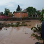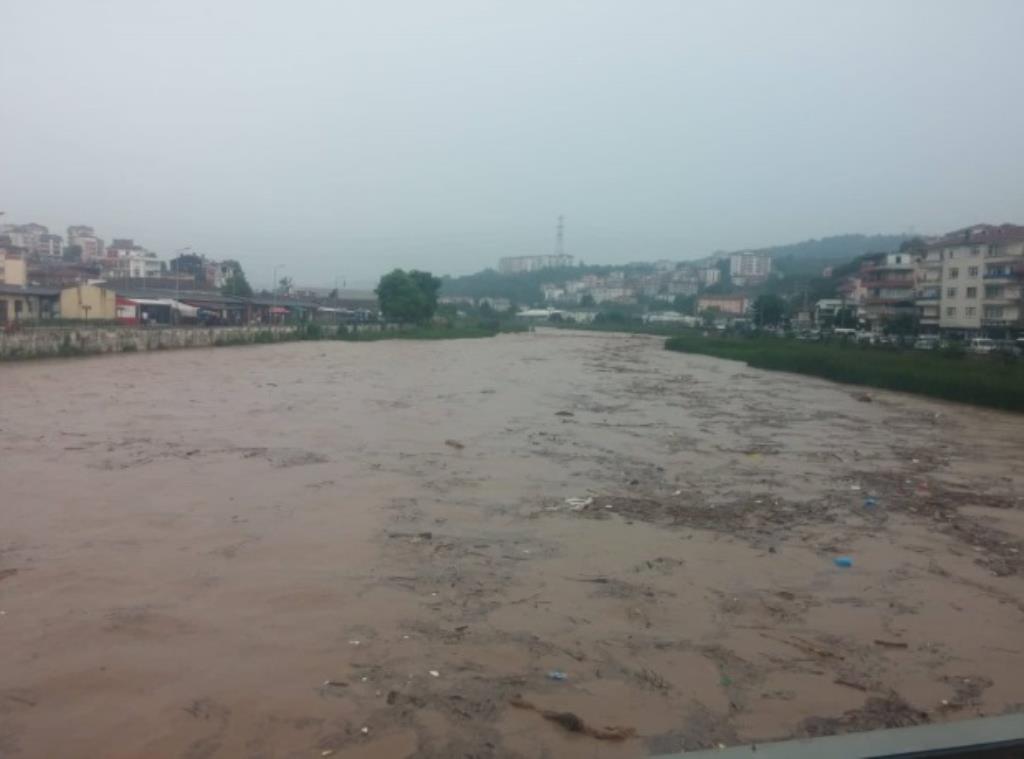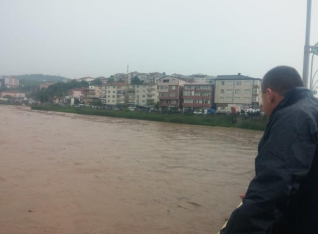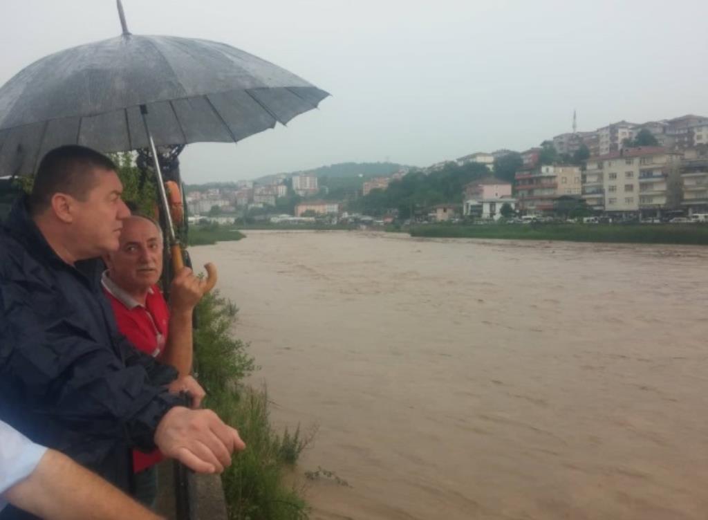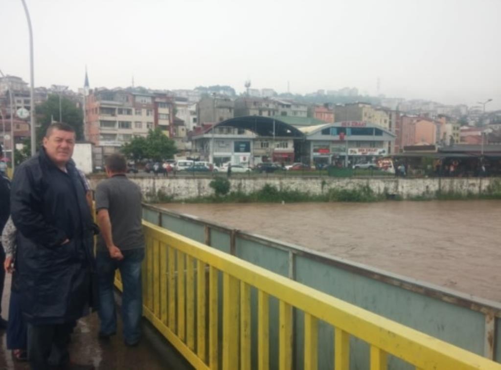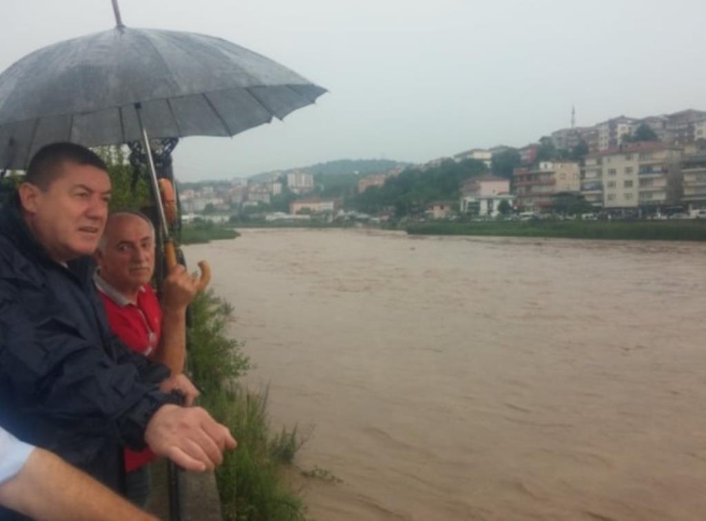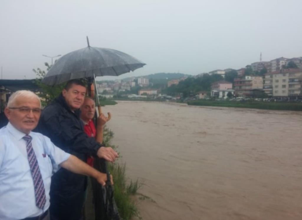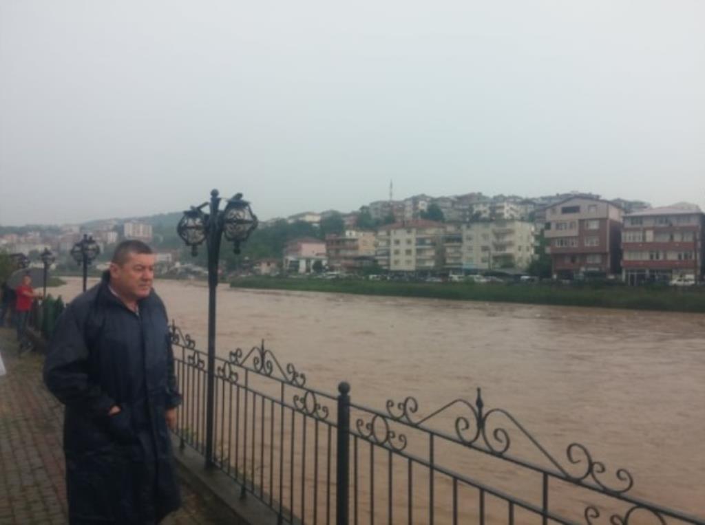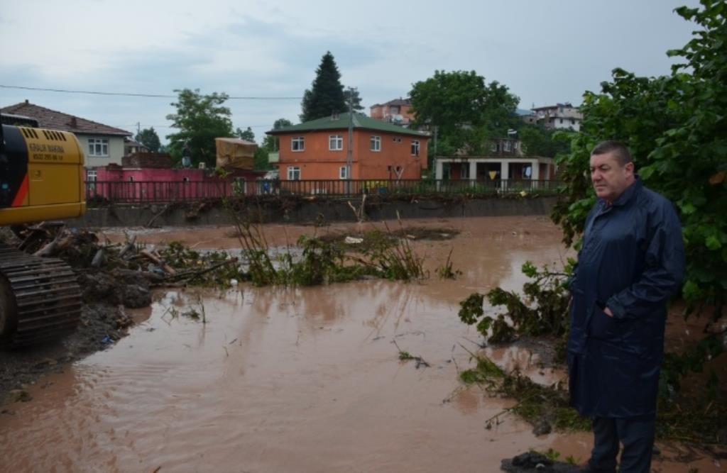 Zonguldak Alaplı Belediye Başkanı Nuri Tekin, sağanak yağış sonrasında su debisi artan Alaplı Deresinde incelemelerde bulundu.