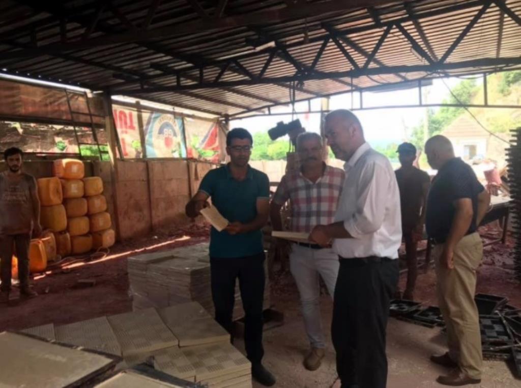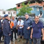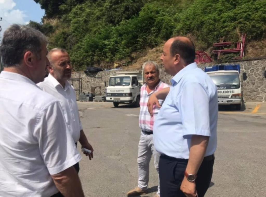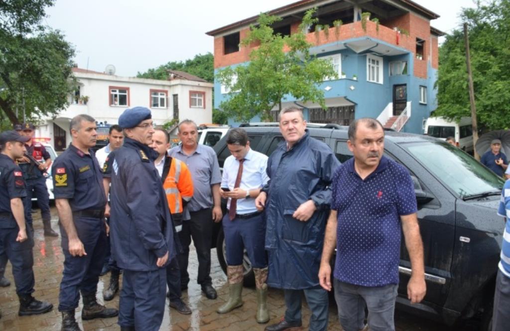 Alaplı Belediye Başkanı Nuri Tekin, Belediye Başkan Yardımcısı Fikret Aydın ve Belediye Meclis Üyesi Yaşar Çevik ile birlikte sel felaketi yaşanan Sarı Kadı Köyü'nde incelemelerde bulundular.