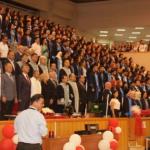 Erdemir Kapalı Spor Salonu’nda gerçekleştirilen törene Zonguldak Valisi Erdoğan Bektaş, Bülent Ecevit Üniversitesi Rektörü Prof. Dr. Mustafa Çufalı, Ereğli Kaymakamı İsmail Çorumluoğlu, Karadeniz Bölge ve Garnizon Komutanı Tuğamiral Cemal Özden Yazıcıoğlu, Ereğli Belediye Başkanı Halil Posbıyık, BEÜ Ereğli Eğitim Fakültesi Dekan Vekili Prof. Dr. Soner Yavuz, BEÜ Rektör Yardımcıları, Senato üyeleri, siyasi parti ve sivil toplum kuruluşu temsilcileri katıldı. Tören için salona gelen öğrenci velilerinin tribünleri tamamen doldurduğu gözlendi.