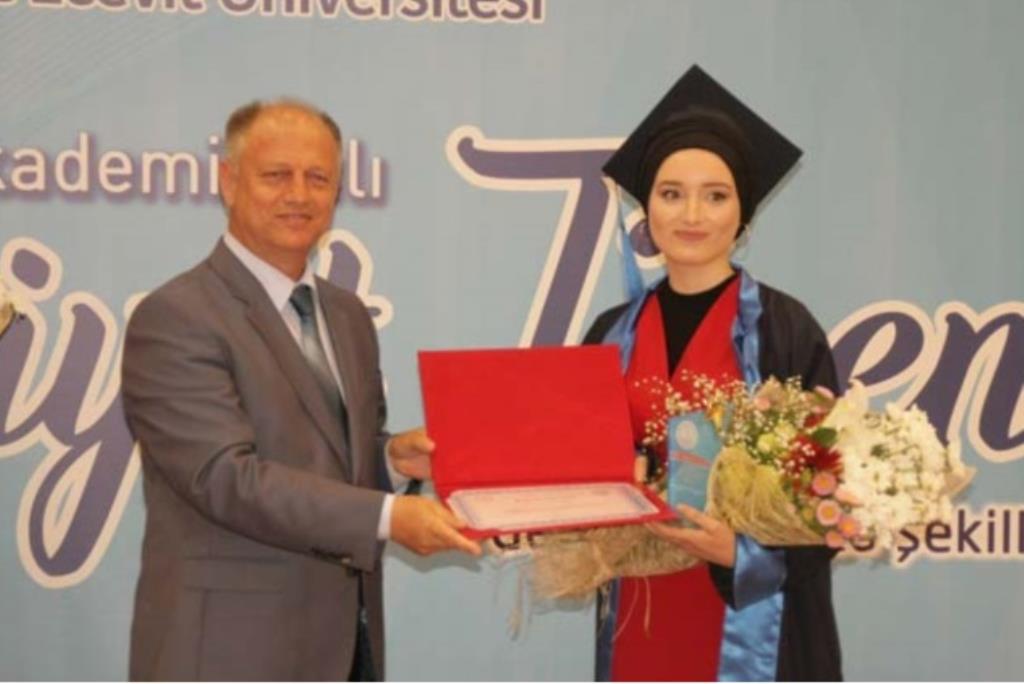 Mezuniyet töreni kapsamında Fakülte birincisi Okul Öncesi Öğretmenliği Bölümü’nden Şeyma Çelen öğrenciler adına bir konuşma yaptı.