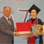 Fakülte Birincisi Çelen, konuşmasının ardından Eğitim Fakültesi Anı defterini imzaladı.