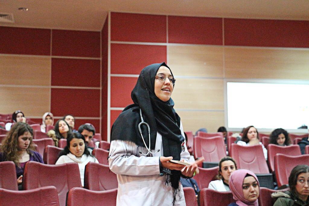 Konuşmanın ardından bilgilendirme sunumunu yapan Nöroloji Anabilim Dalı Öğr. Üyesi Dr. Öğretim Üyesi Esra Acıman Demirel son 10 yılda gabapentinoidlerin endikasyonlarının ve buna paralel olarak kullanımlarının arttığını, bunların Amerika Birleşik Devletleri’nde en çok reçete edilen 10 ilaç arasında yer aldığını söyledi. Gabapentinoidlerin kötü kullanımının da arttığını belirten Dr. Acıman Demirel klinisyenlerin bu ilaçları reçete ederken hastaların geçmiş madde kullanım bozukluğunun, psikiyatrik hastalık ve kullandıkları ilaç öykülerinin doğru alınması gerektiğini vurguladı.