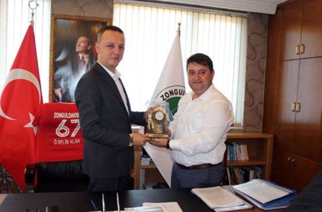 Ziyaretten duyduğu memnuniyeti dile getiren Zonguldak Belediye Başkanı Dr. Ömer Selim Alan’a, GMİS Genel Başkanı Hakan Yeşil, günün anısına madenci heykeli armağan etti.