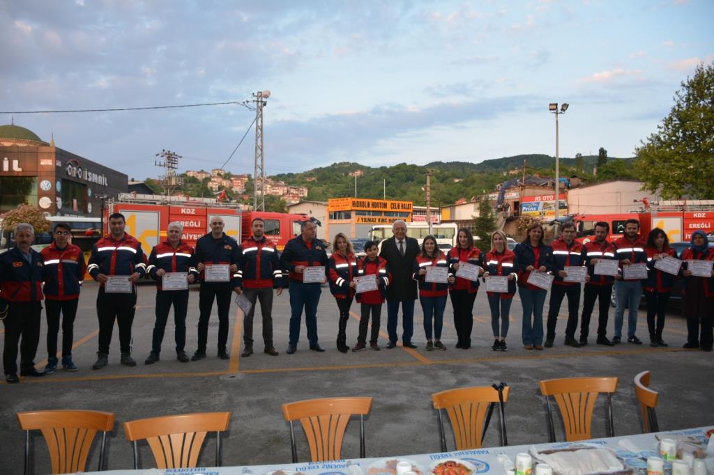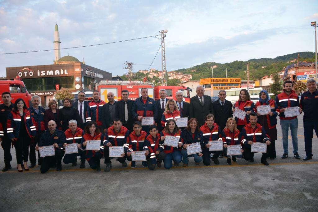öncesi 11.Grup Gönüllü İtfaiyecilere sertifikalarını takdim eden