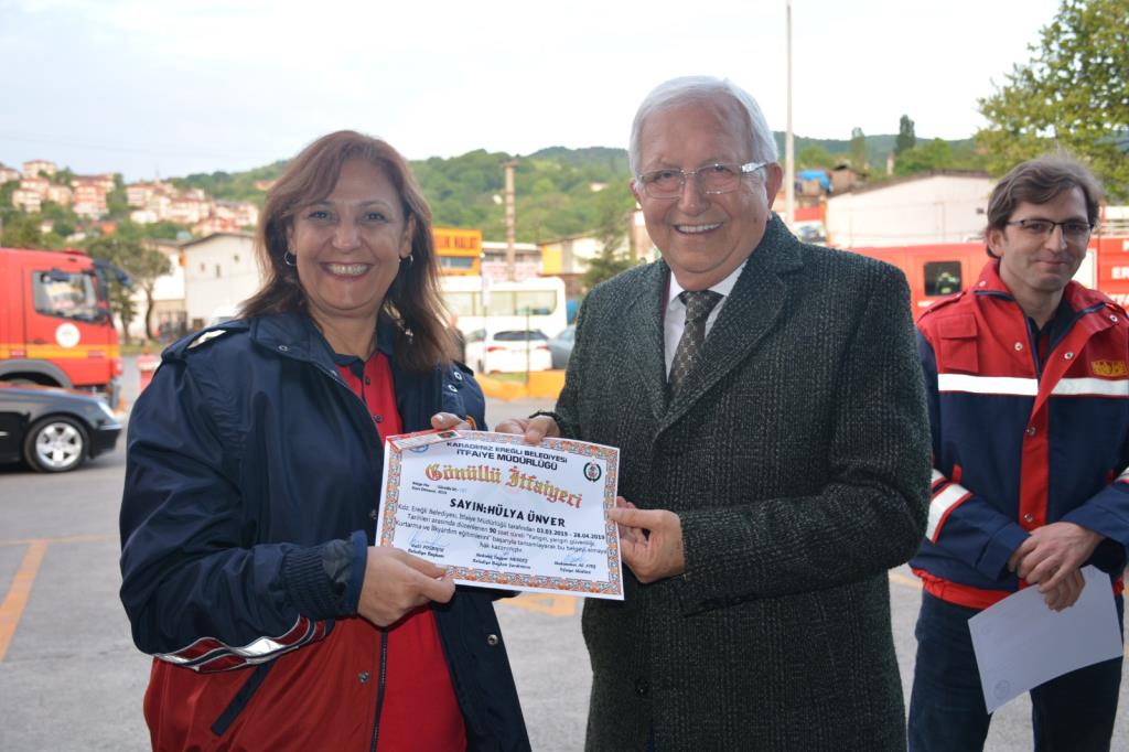 Gönüllü itfaiyecilerimizi kutluyor, eğitmenlerimize teşekkür ediyorum ”dedi.