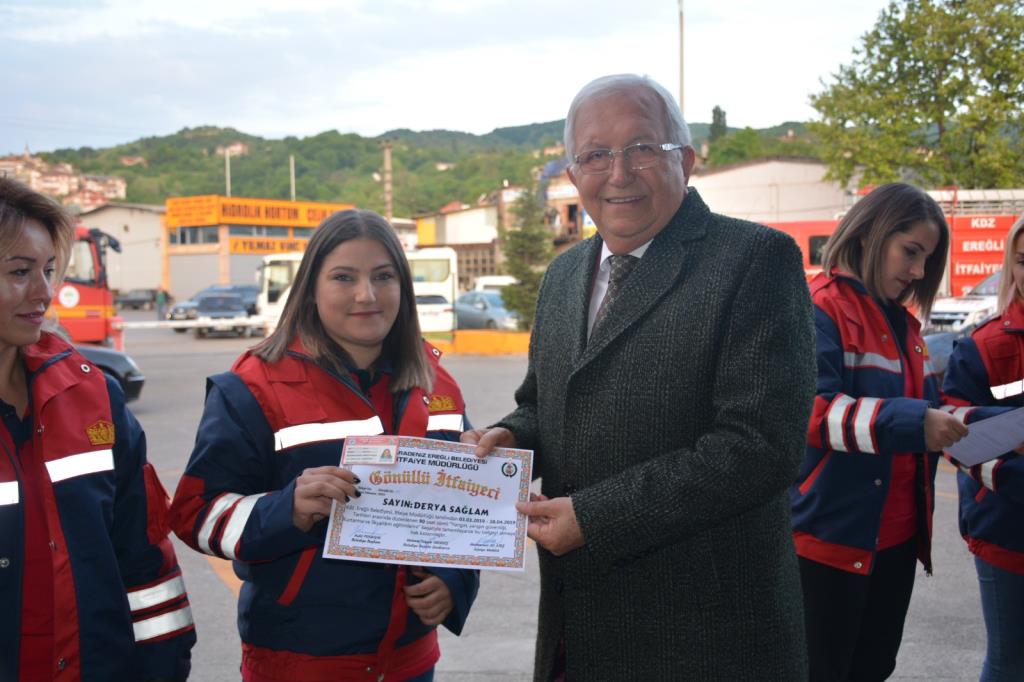 GÖNÜLLÜ İTFAİYECİLERE SERTİFİKALARINI VEREN BAŞKAN POSBIYIK;