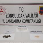 Zonguldak İl Jandarma Komutanlığına bağlı ekiplerin yaptığı uyuşturucu operasyonlarda çok sayıda uyuşturucu madde ele geçirildi. İki ayrı operasyonda 2 şüpheli gözaltına alındı.