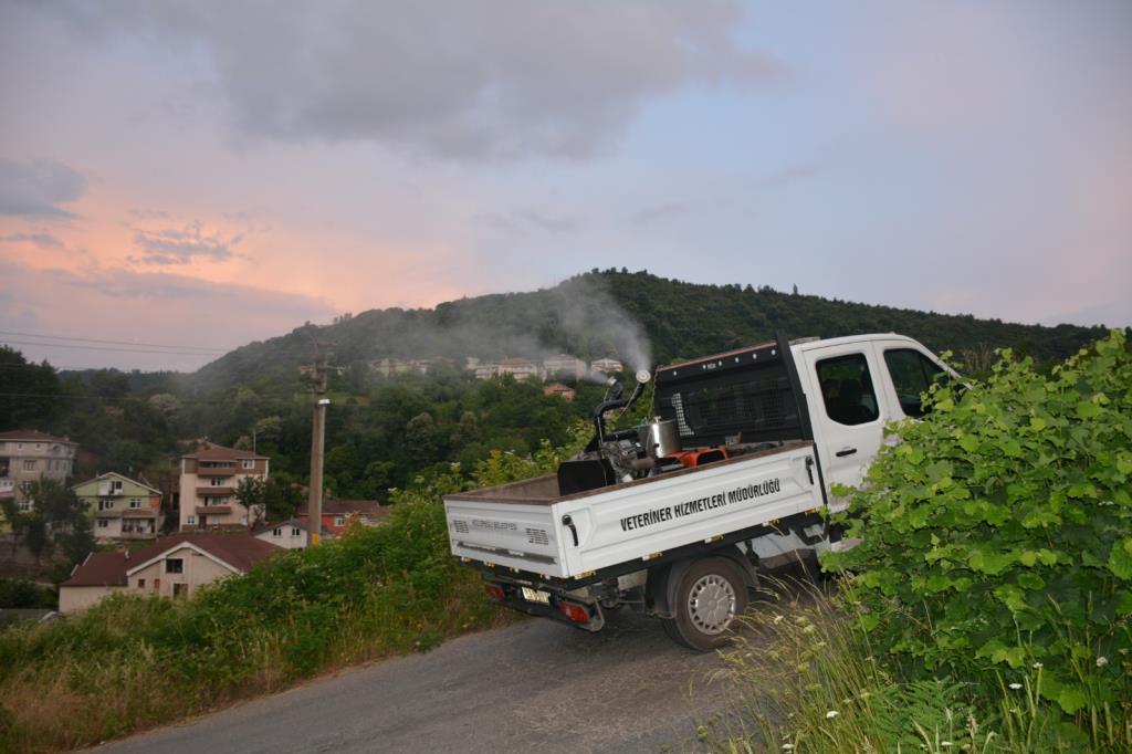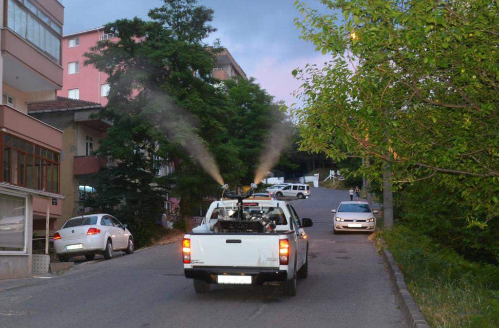 Kış aylarında sivrisineklerin saklanarak geçirdikleri alanlarda yapılan kışlak ilaçlama çalışmalarının ardından üreme alanları olan dere yatakları gibi sulak yerlerde larva mücadelesini tamamlayan Veteriner İşleri Müdürlüğü ekipleri, hava sıcaklıklarına paralel artan sivrisineklere karşı ilçenin her mahallesinde akşam saatlerinde ilaçlama yapıyor.