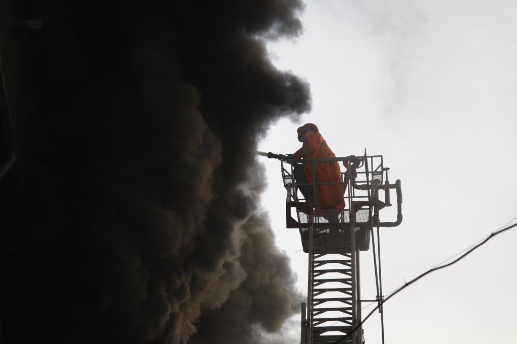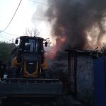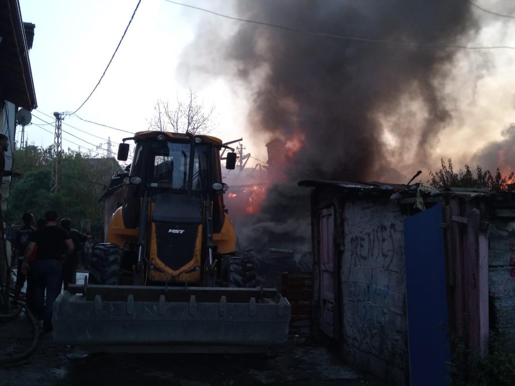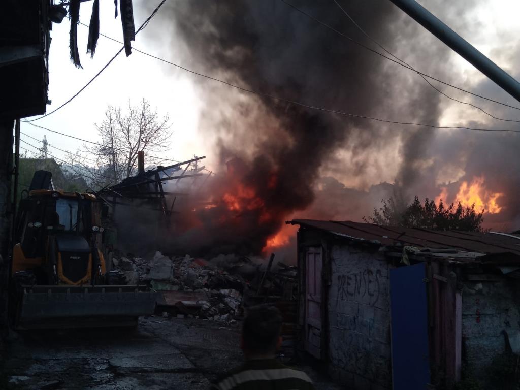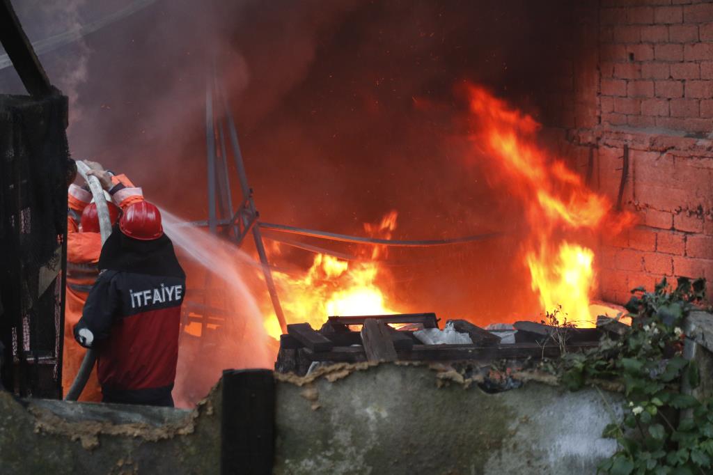 Yan binalara sıçrayan yangına ekiplerin müdahalesi sürüyor. Yangının dumanı yaklaşık 10 kilometrelik alana yayıldı. Ayrıca atölyenin yanında bulunan boş binada kepçe yardımıyla yangının sıçramaması için yıkım yapılıyor.