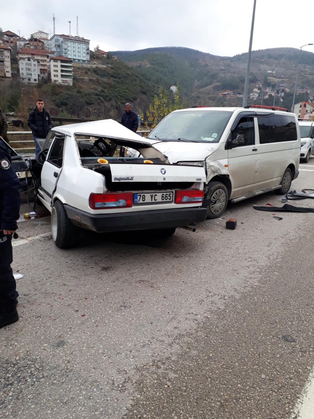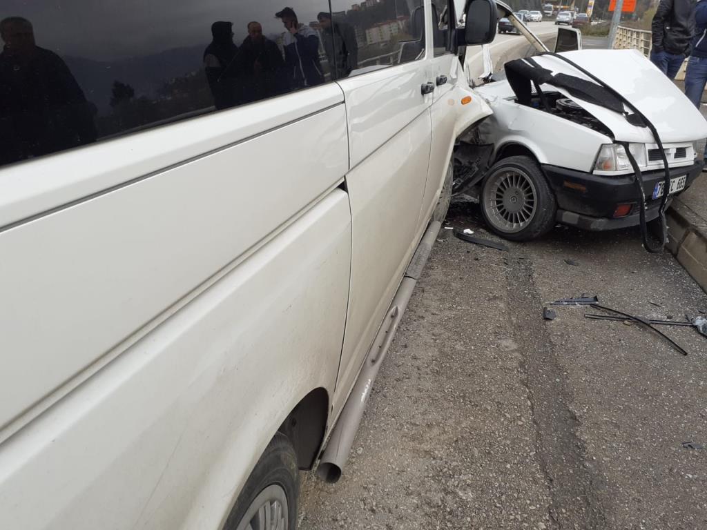 Edinilen bilgiye göre kaza çevreyolu Uzunkum mevki'inde meydana geldi. İbrahim Çamlı yönetimindeki 78 YC 665 plakalı otomobile, Ayhan Duru yönetimindeki 78 AD 803 plakalı midibüs çarptı. Çarpmanın etkisiyle hurdaya dönen otomobildeki sürücü ölümden döndü. İhbar üzerine olay yerine polis ve 112 ekipleri sevk edildi. Olay yerine gelen sağlık ekipleri sürücü Çamlı’nın tedavisini olay yerinde yaparken, diğer sürücü ise kazayı yara almadan atlattı.