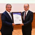 Konuşmaların ardından TÜV NORD Genel Müdürü Rıza Başkan, KARDEMİR Genel Müdürü Soykan'a belgeleri takdim ederken, proje ekibine de teşekkür belgelerini verdi.