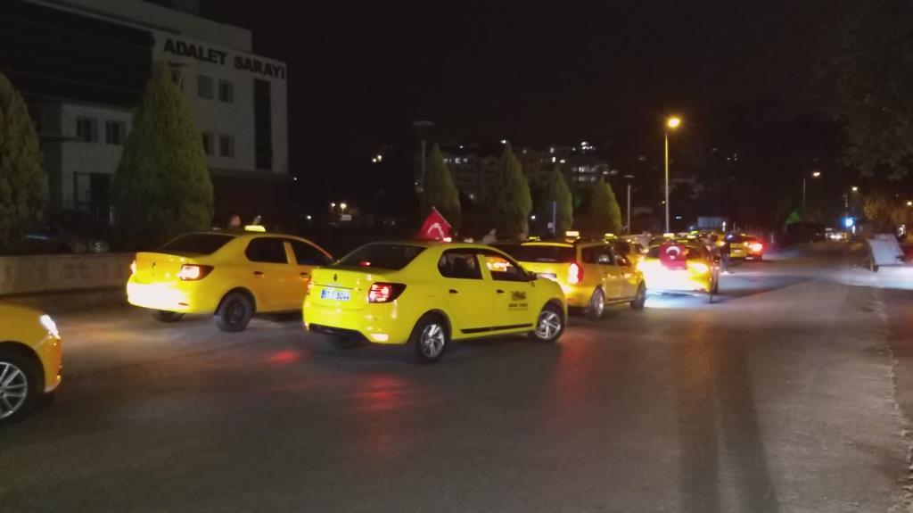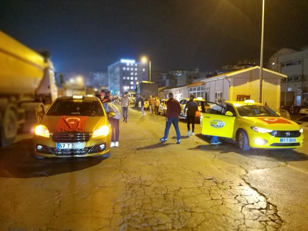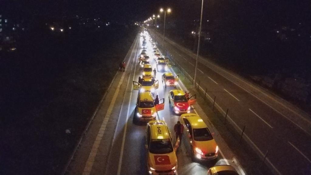 Zonguldak’ın Ereğli ilçesinde taksiciler toplanarak ‘Barış Harekatına’ destek amacıyla konvoy düzenledi. Taksiciler konvoyun son durağı olarak Karadeniz Bölge Komutanlığının önünde tekbir getirdiler.